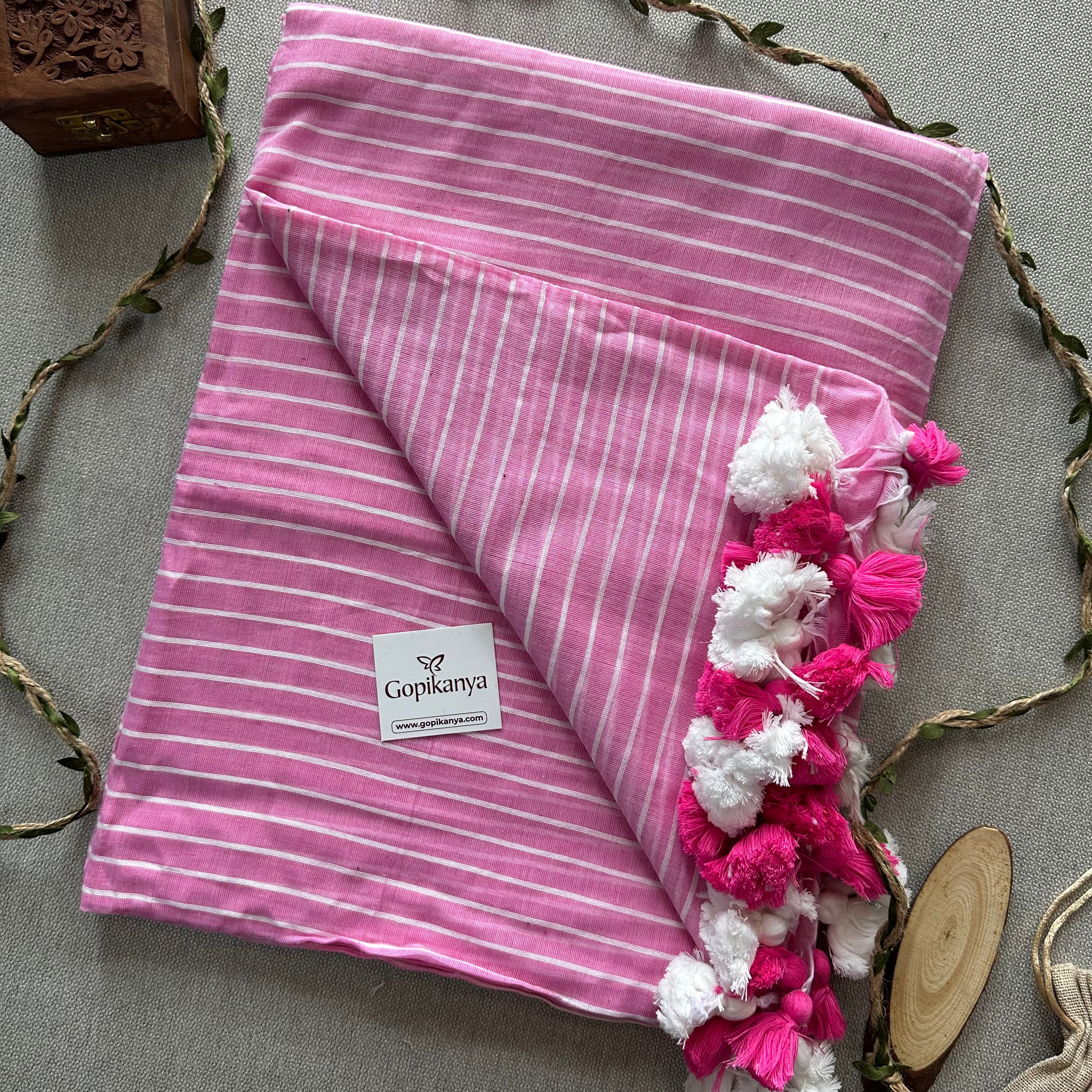 Baby Pink Pure Handloom Mul Mul Cotton Saree