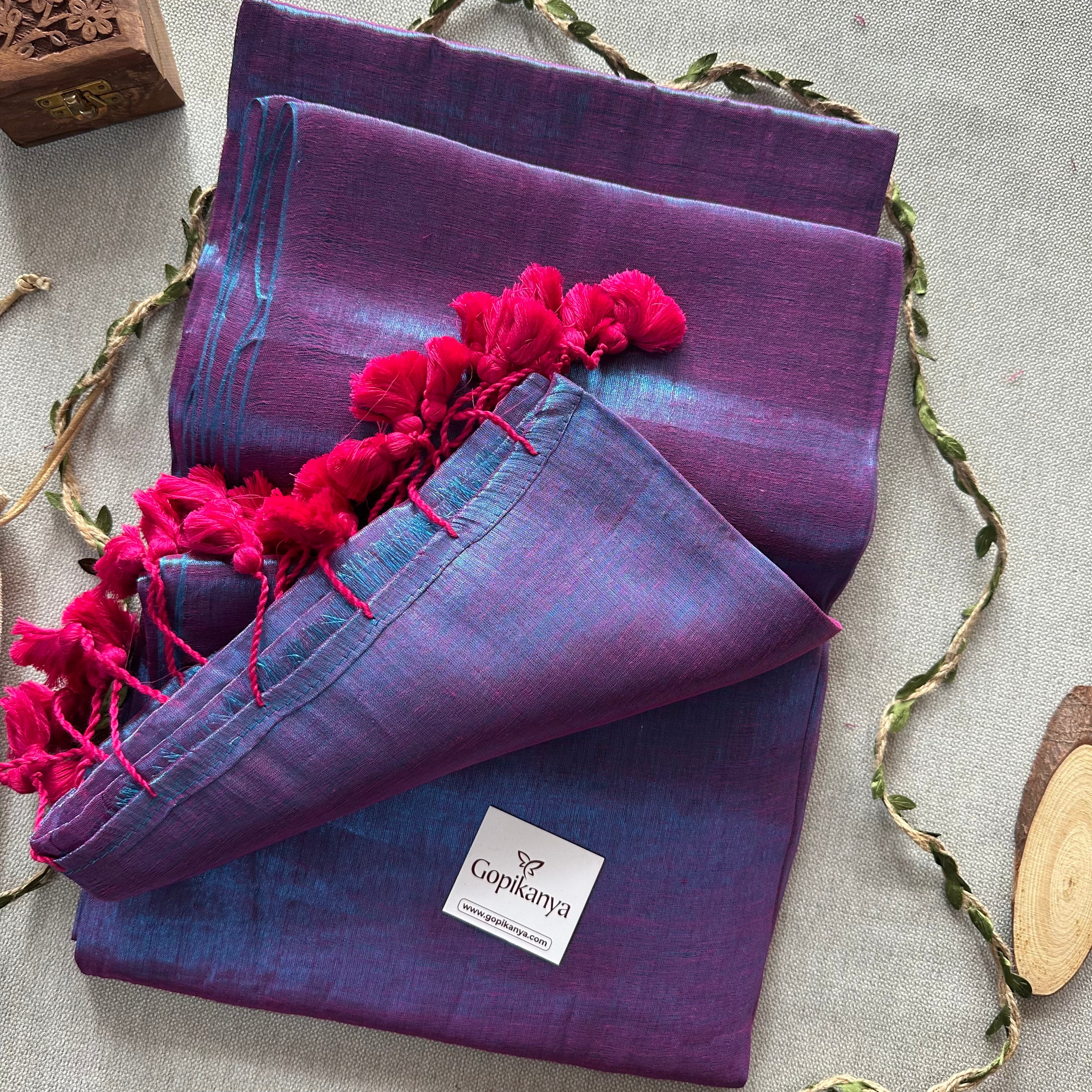 Light Blue Nd Pink Pom Pom Handloom Raga Tissue Saree