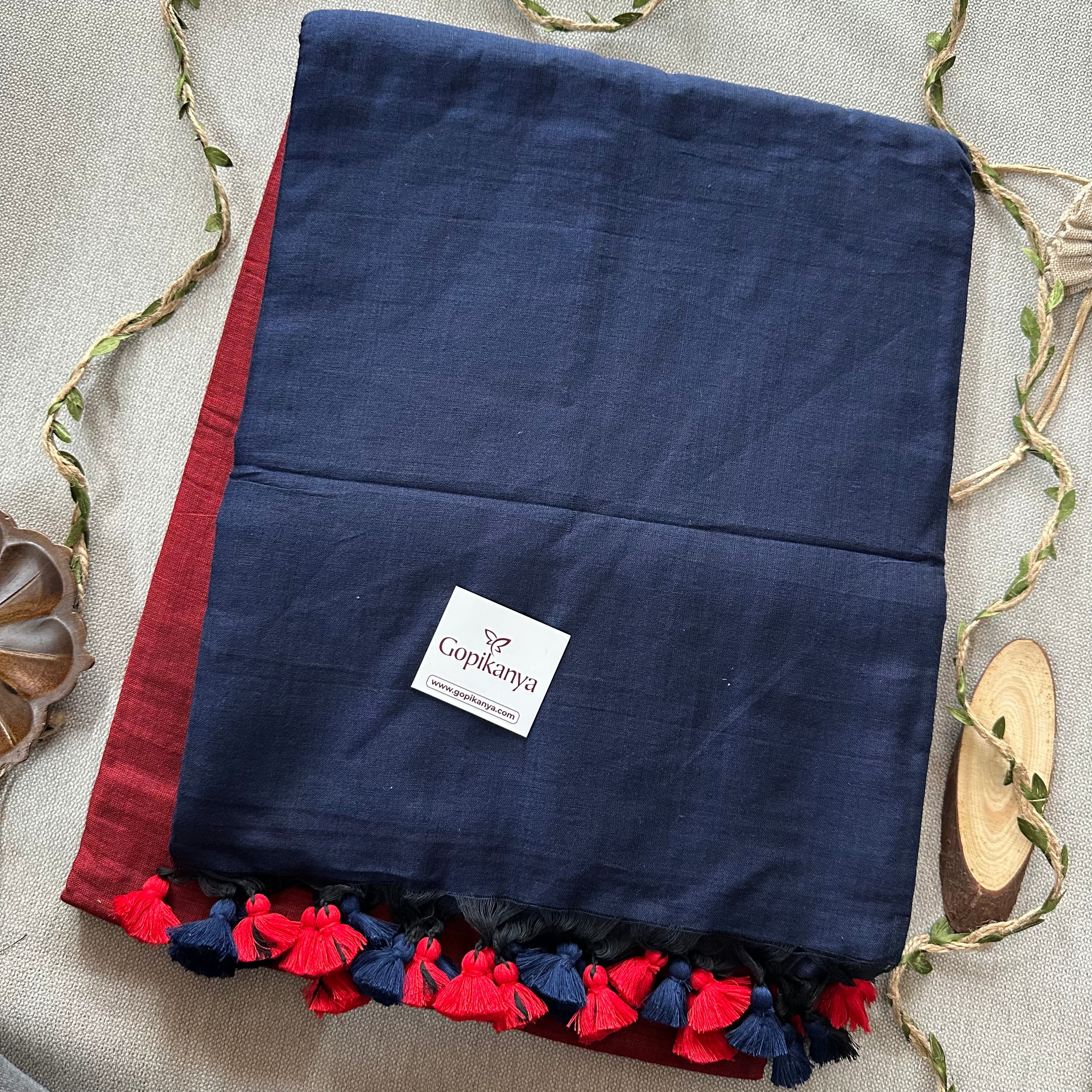 Maroon Nd Blue Handloom Khadi Cotton Saree