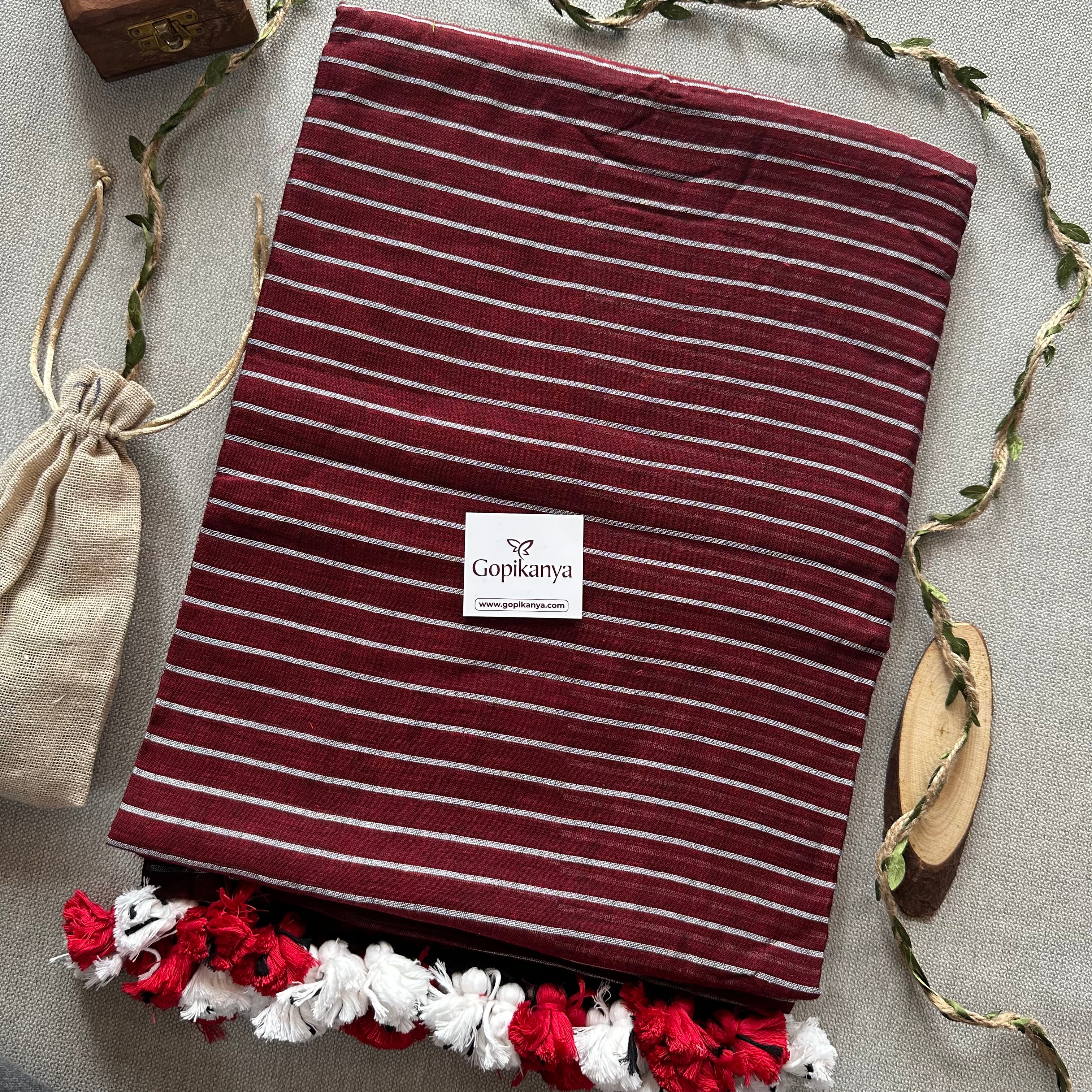 Maroon Pure Handloom Mul Mul Cotton Saree