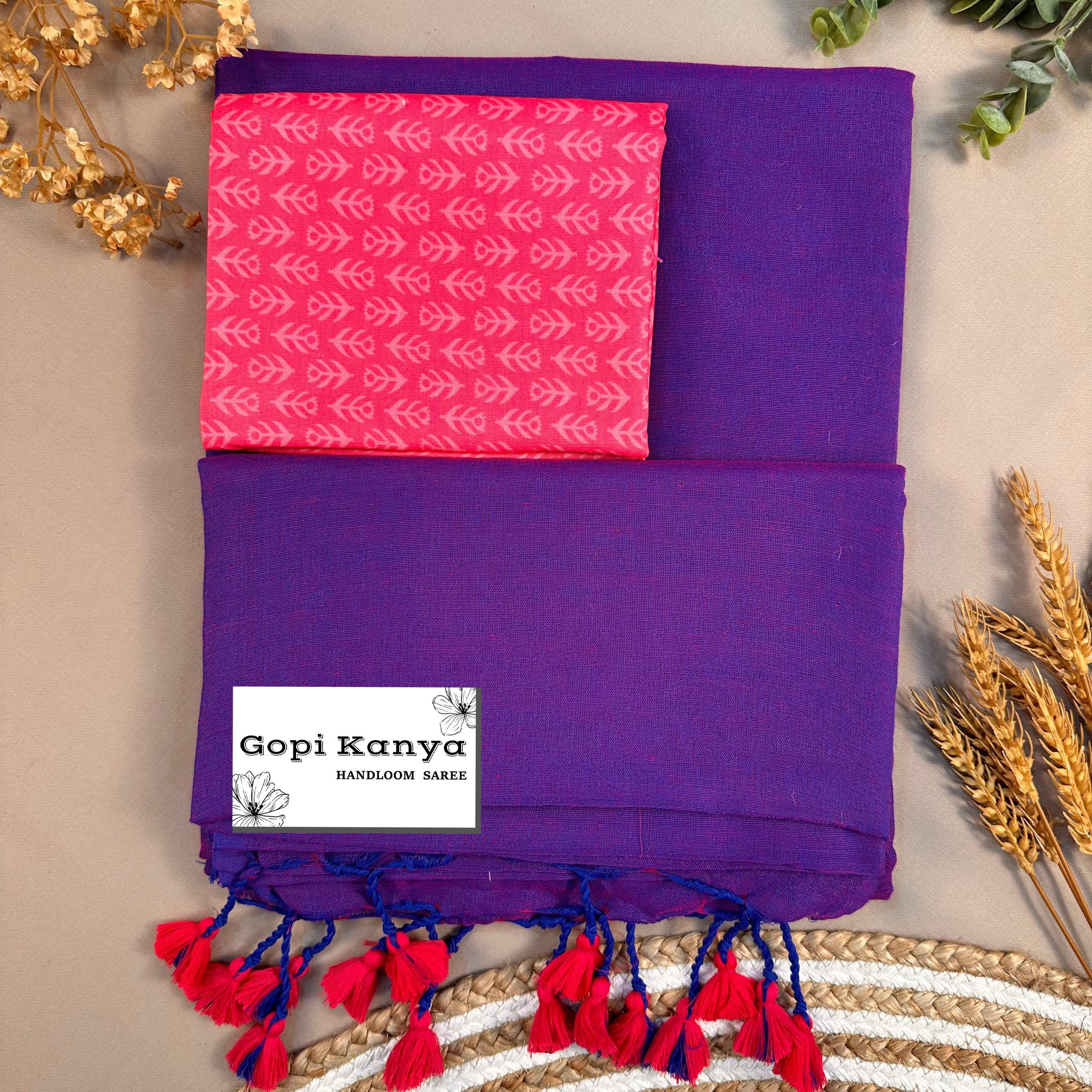 Light Purple Handloom Cotton Saree With Printed Blouse—
